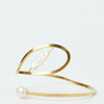 Pulsera hecha a mano en bronce con baño de oro de 24k, esta pulsera abierta destaca por su forma orgánica y el circón azul, tallada en forma de gota. Una pieza moderna y delicada, ajustable a cada muñeca.