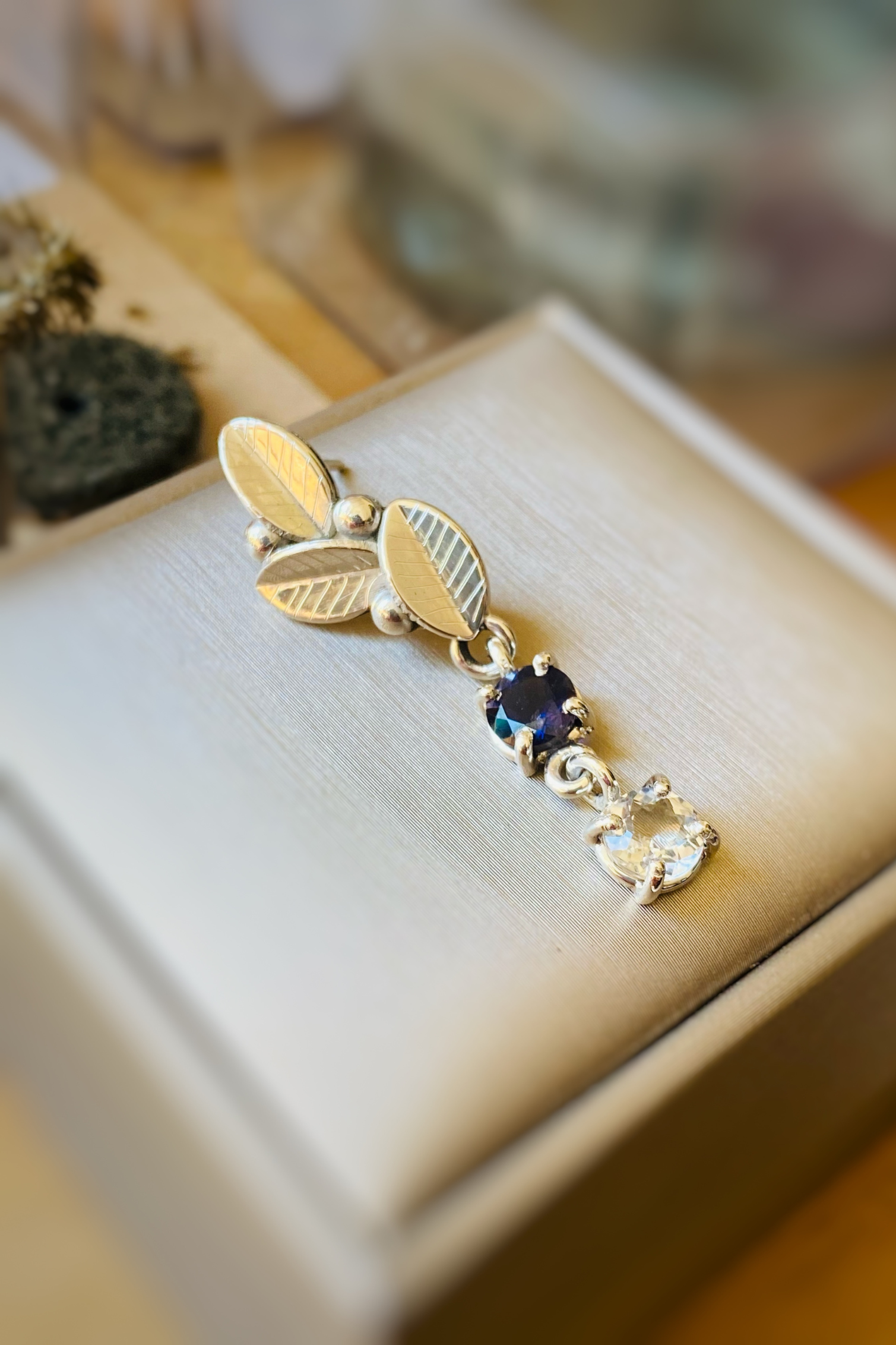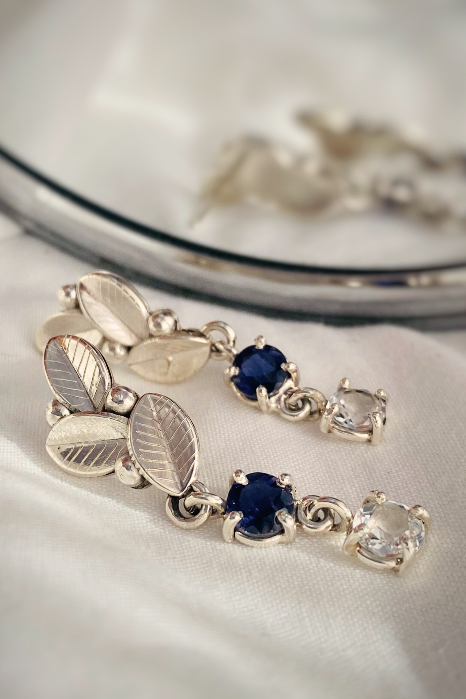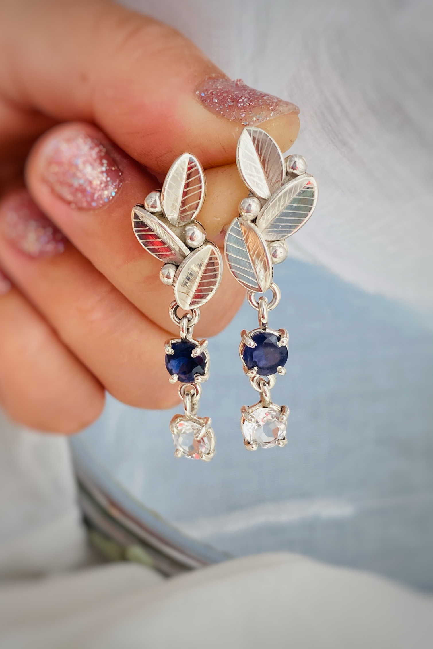 ‣ Unos delicados aritos con movimiento y destellos, gracias a estas lolitas y topacios transparentes facetadas. Un match elegante de tonos azules y transparentes ideal para ocasiones especiales. Las piedras de tonalidades azules aportan calma y el brillo de los topacios, se moverán contigo.