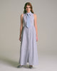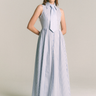 Una versión fresca y refinada de nuestro clásico vestido camisero, el modelo Alicia en su versión listada propone una silueta femenina y atemporal, ideal para los días de calor. Con cuello camisero amplio, botones en el delantero y un largo generoso hasta el suelo, este vestido destaca por su versatilidad. La tela de rayas verticales en azul y blanco entrega una imagen pulcra y veraniega, mientras que los lazos en la espalda permiten entallar suavemente la cintura sin comprometer la comodidad. Incluye bolsillos laterales escondidos, perfectos para el uso diario.