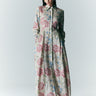 ‣ El vestido Alicia es una de esas piezas pensadas para acompañarte por temporadas. Confeccionado en un algodón 100% certificado OEKO-TEX, se presenta en un delicado estampado floral de inspiración vintage. Su silueta larga de líneas femeninas y elegantes se construye a partir de una cintura ceñida, que puedes ajustar con lazo del mismo textil, y una falda amplia con tablas que otorgan fluidez al caminar. El cuello camisero, los botones visibles al tono y los bolsillos laterales discretos lo hacen funcional sin perder sofisticación. Ideal para llevar con botines o zapatos de tacón bajo.