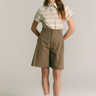 ‣ La bermuda Sofía en tono visón combina la estructura clásica del sastrero con una silueta relajada y contemporánea. Su calce a la cintura y su largo hasta la altura de las rodillas la convierten en una prenda versátil para los días más cálidos. Está confeccionada en un suave algodón certificado OEKO-TEX, lo que garantiza un contacto seguro con la piel y una excelente caída. Ideal para combinar con tops ligeros o blusas más estructuradas según la ocasión.