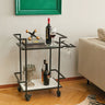 ‣ Materiales: cubierta superior en cristal 5mm y inferior en mármol carrara, Perfil 15x15, dos ruedas con freno.