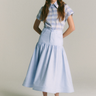 La Falda Luisa en su versión celeste es una propuesta fresca y sofisticada para los días de calor. Confeccionada en 100% algodón certificado OEKO-TEX, su diseño estructurado destaca por una pretina alta con bolsillos delanteros y una falda amplia con vuelo que incorpora una cinta de horse hair en el ruedo para otorgar mayor cuerpo y movimiento. Perfecta para combinar con tops ajustados o blusas románticas.